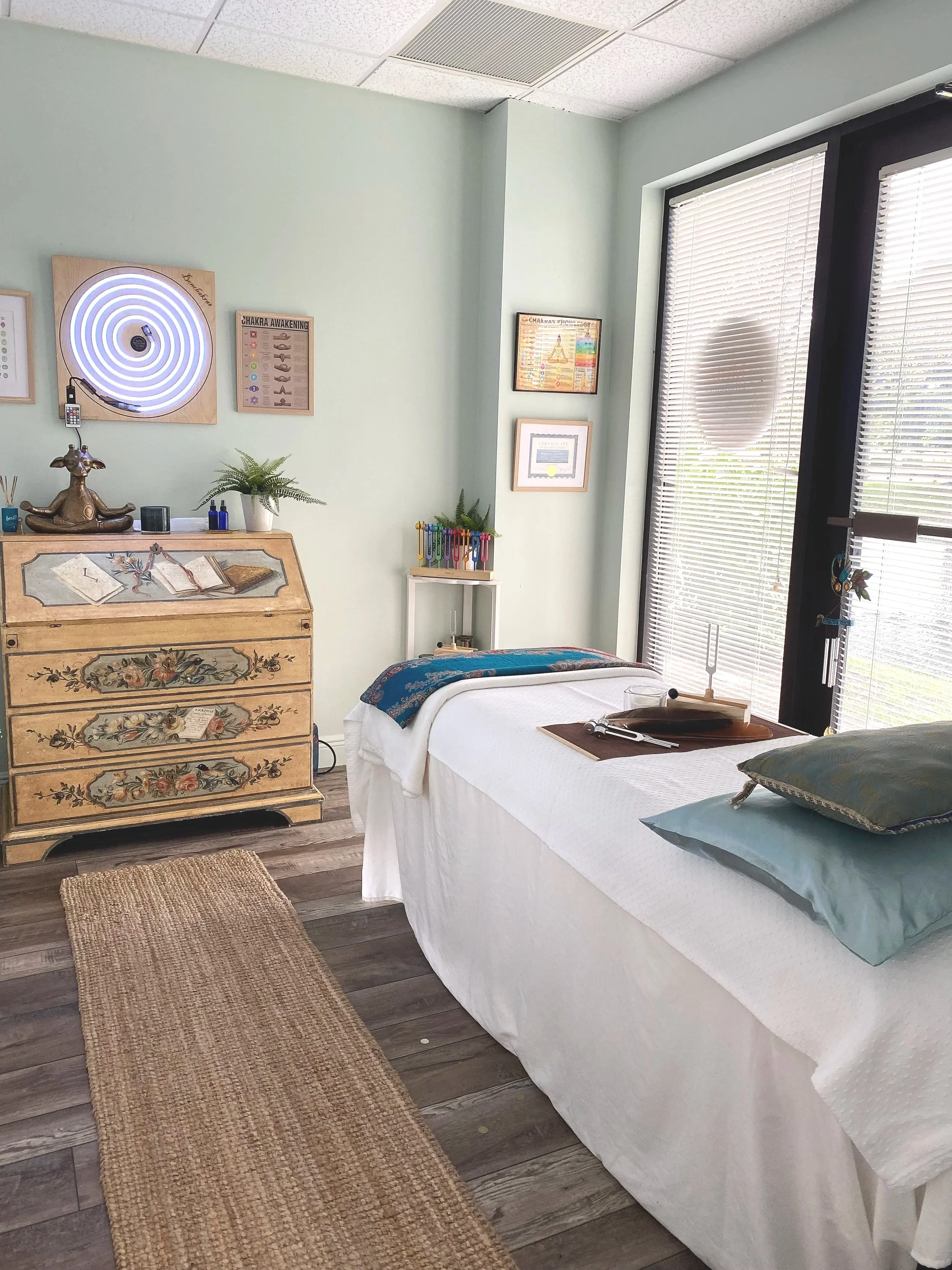 Your experience begins with a brief, private consultation. We'll discuss what brought you in, any specific physical or emotional concerns, and your intentions for the session. You are also welcome to ask any questions you may have.